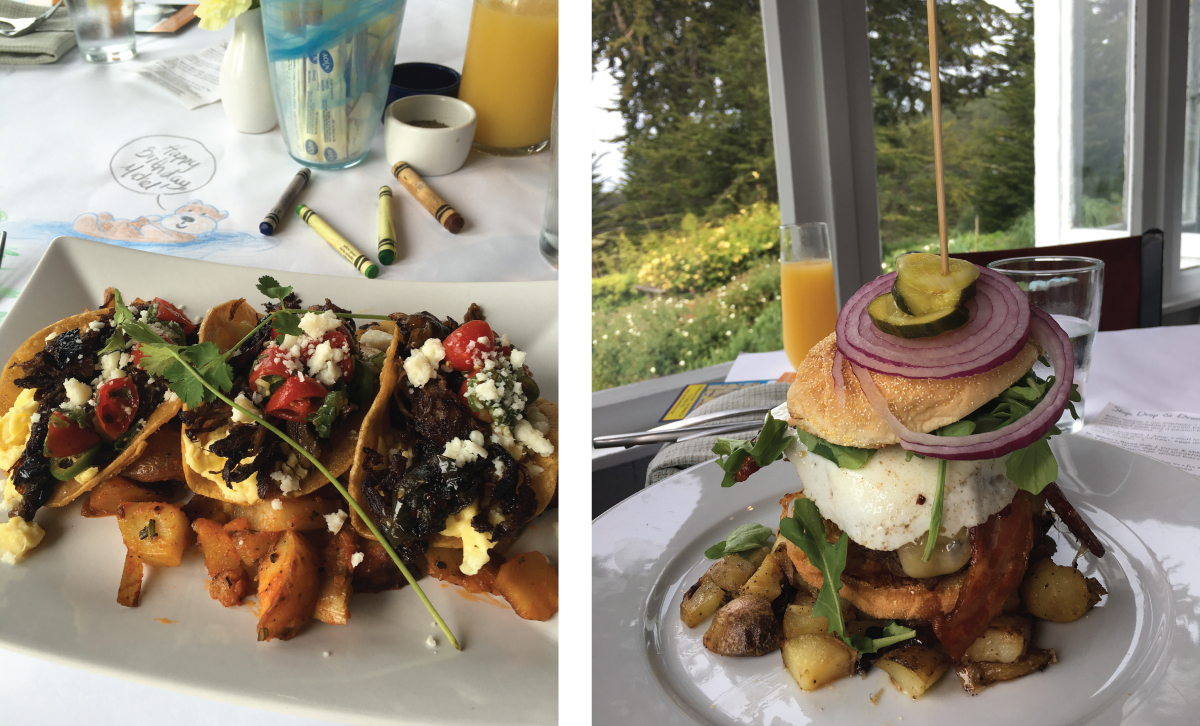 We enjoyed breakfast as Circa ’62 at the Inn at Schoolhouse Creek, which is just a few miles south of the town of Mendocino. And when I say “enjoyed,” I mean enjoyed. I had the Mexican tacos, which included pork carnitas, scrambled eggs, caramelized onions and jalapenos, a cherry tomato salsa, and cojita, served with corn tortillas and spicy papas bravas. Michel had the breakfast burger, which is the largest burger I’ve ever seen. And by biggest burger, I mean it was taller than his head. The ingredients were fresh and the flavor was hard to beat.